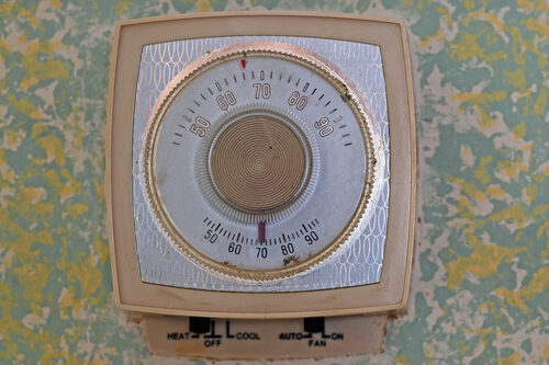 Many houses still use circular thermostats you adjust by turning a dial. There’s no touchscreen, no scheduling algorithm, and no remote control. You stand there and choose a temperature manually. Changes happen gradually, not instantly.